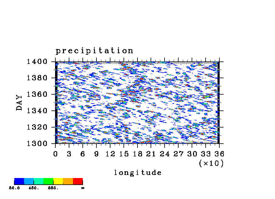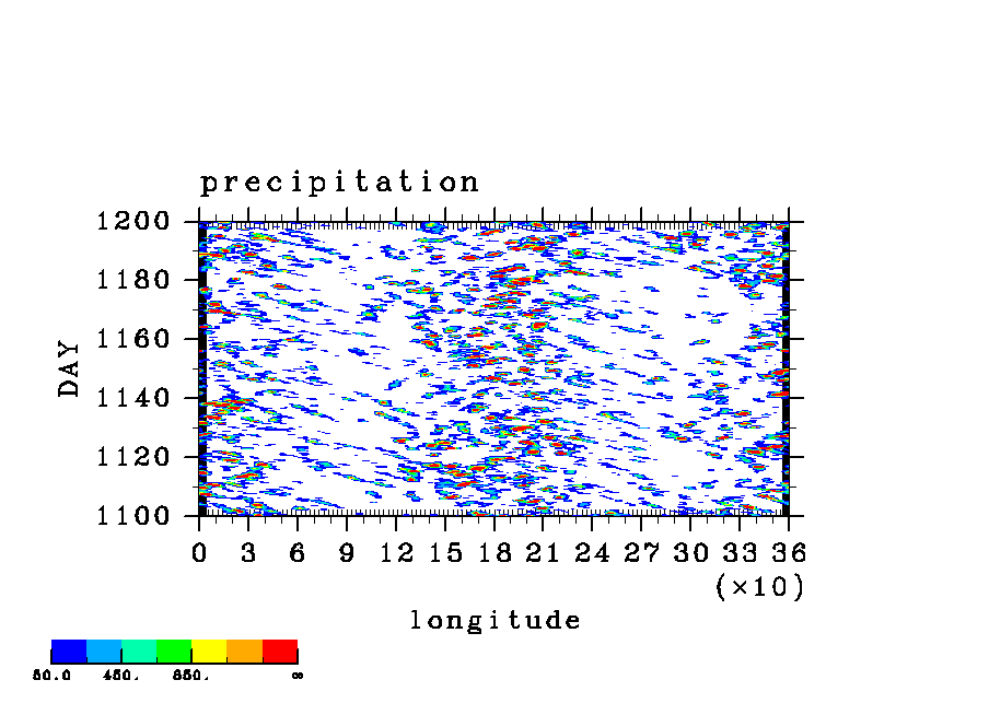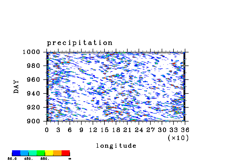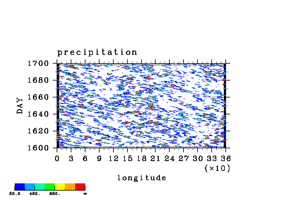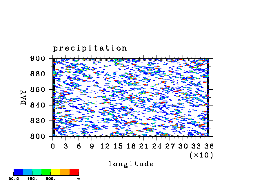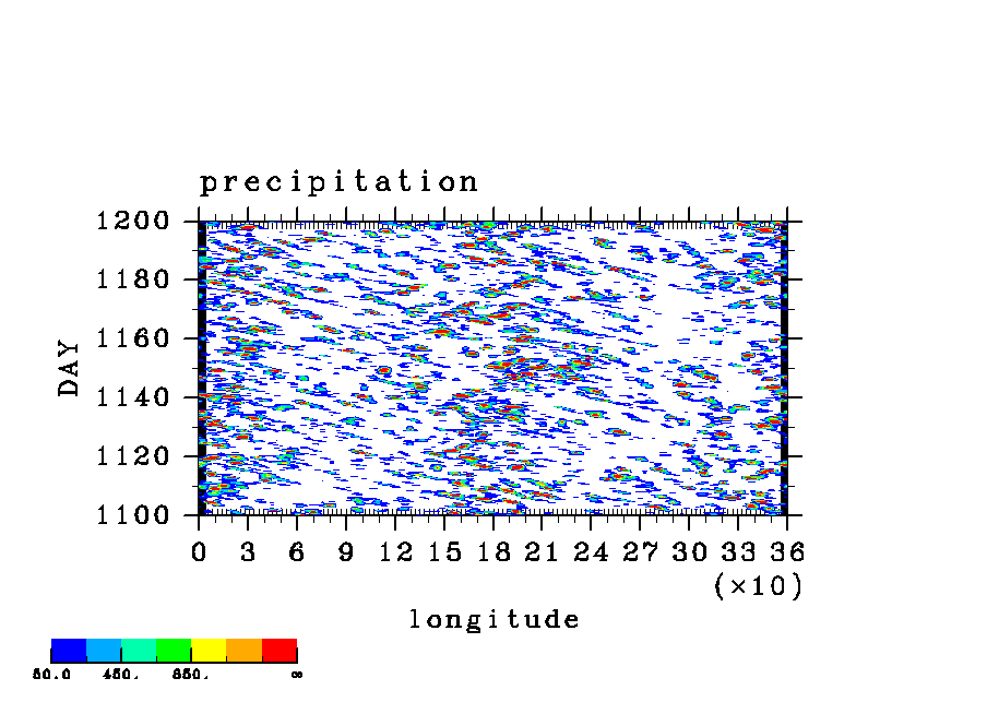 COS(x) 波長 2 実験シリーズ (paCC) [赤道 x-t, 東西平均からの偏差]