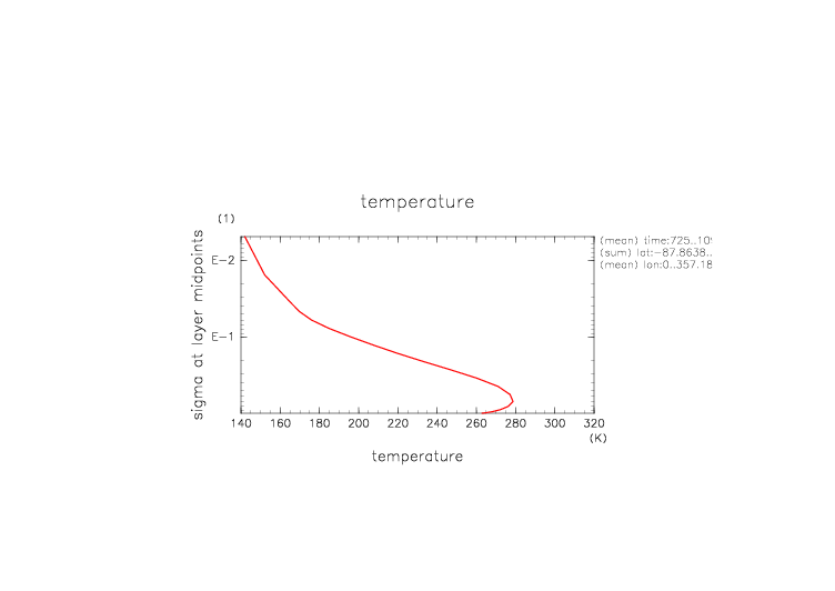 温度. 東西平均 (鉛直座標は対数プロット) |