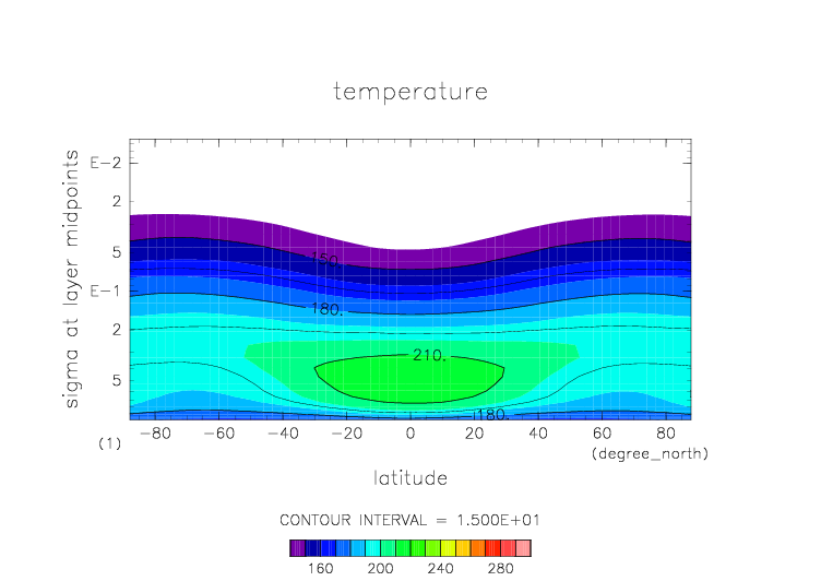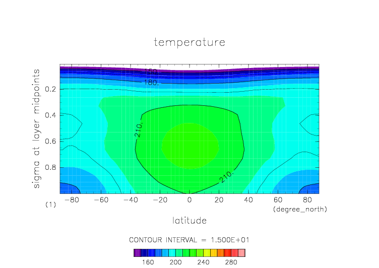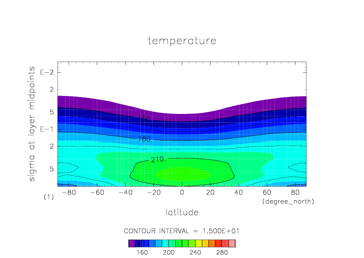 温度. 東西平均 (鉛直座標は対数プロット) |