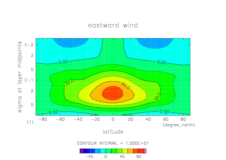 sigma=0.1 における東西風 |