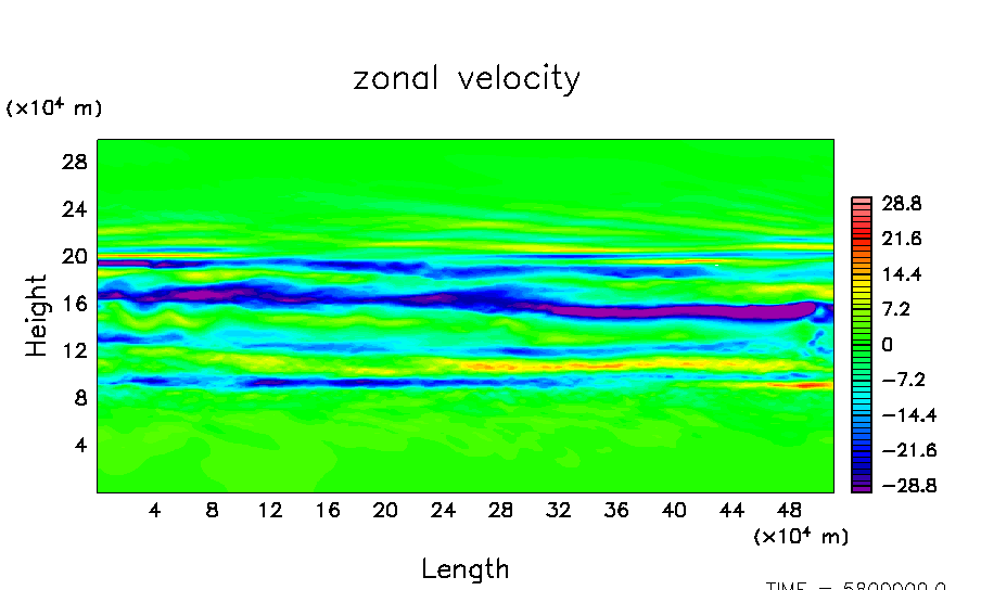 木星大気における平均的な流れ場と凝結成分の分布を数値的に求める.