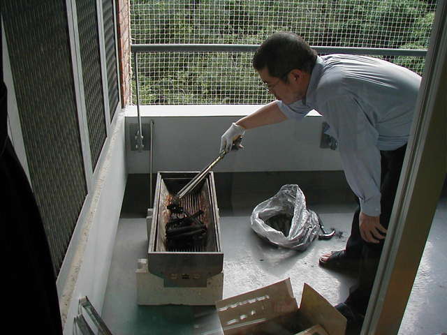 実習の最終日 (7/11) には夕方から打ち上げを行いました. まずは火起こしから.