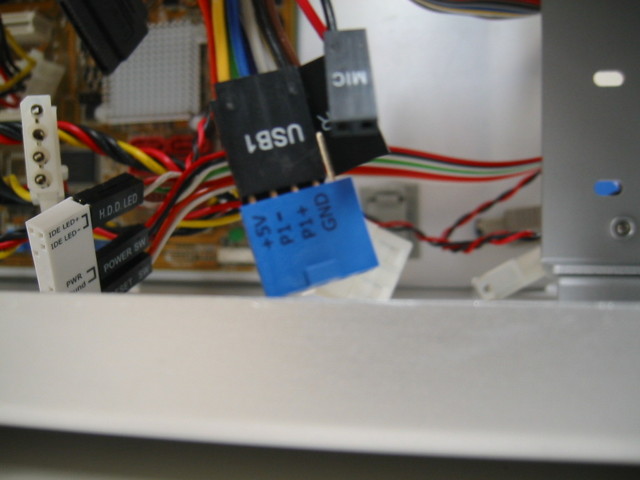 ] 4 ピンのコネクタが 2 つあるので, 青いコネクタ (8 ピン) にその両方をつなぎます.