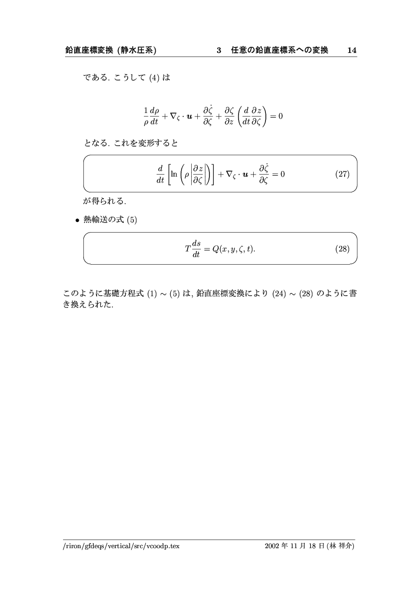 鉛直座標変換 (静水圧系) -- p-座標, ln p-座標, σ-座標 -- 公開領域