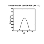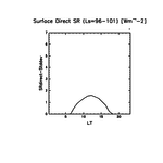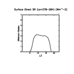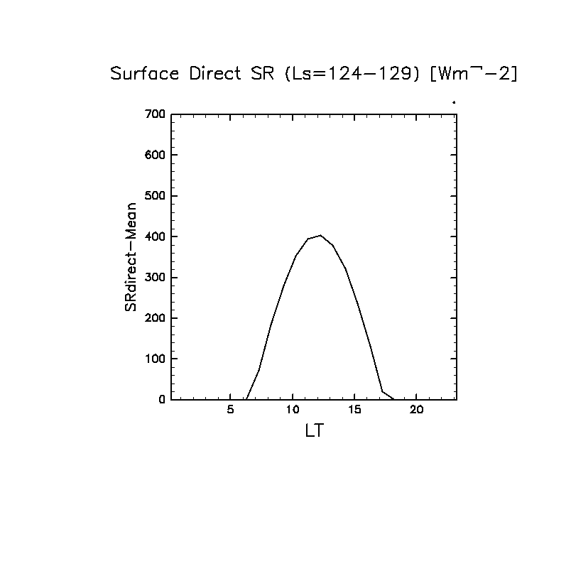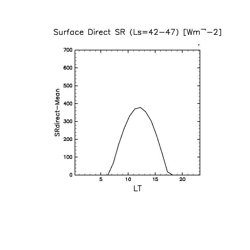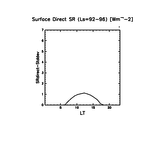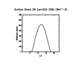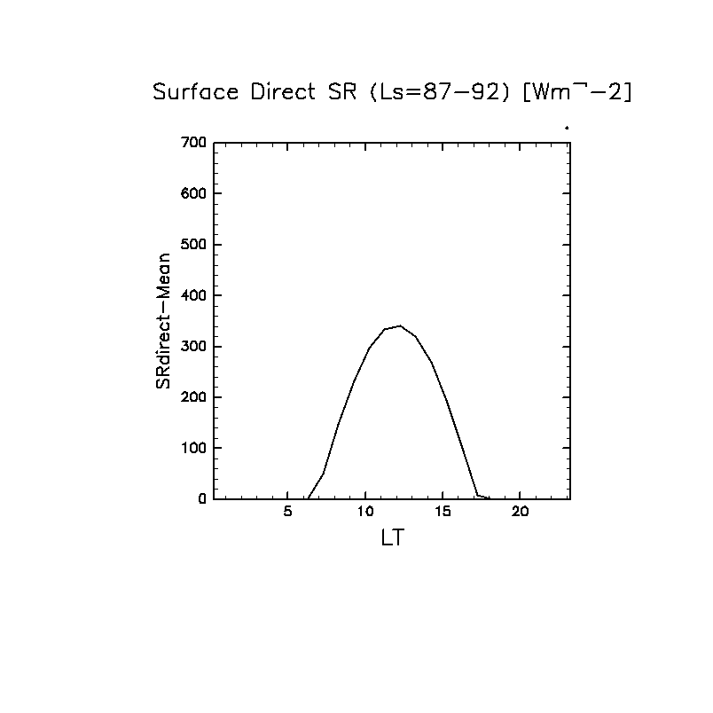 地表における直達太陽放射 (下向きを正, 実線は平均, 破線は大気上端)