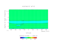 東西風. 赤道断面 (鉛直座標は対数プロット) |