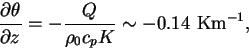 Vertical gradient of potential temperature below about 50