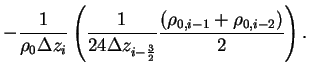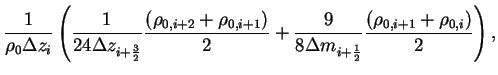 The second and forth order centered schemes are used because the space differencing in the continuity equation is evaluated by the forth order centered scheme while that in the pressure gradient term is evaluated by the second order centered scheme. Therefore is quintdiagonal matrix. The element is represented as follows.